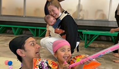 レッスンはもちろん、季節のイベントにプレゼントなどなど盛りだくさんの親子ベビースイミング!