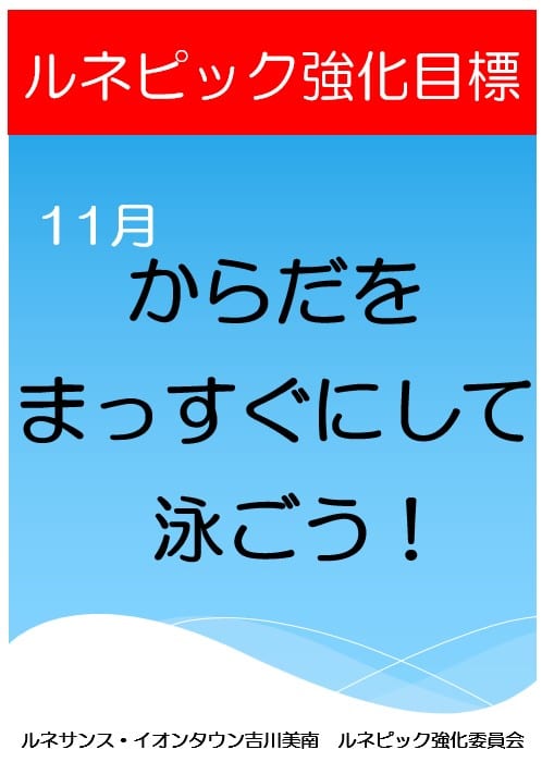 【ジュニアスイミング】11月行動目標 “上手に並んでお話しを聞こう”