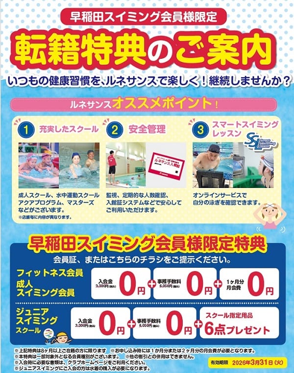早稲田スイミングにお通いの皆様へ!特別ご入会キャンペーンのご案内!