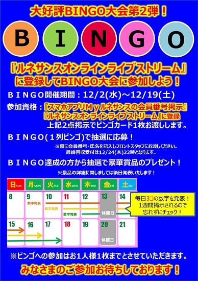 第2弾!!ビンゴ大会開催のお知らせ