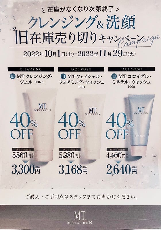 MTクレンジング&旧洗顔在庫売り切りキャンペーン☆