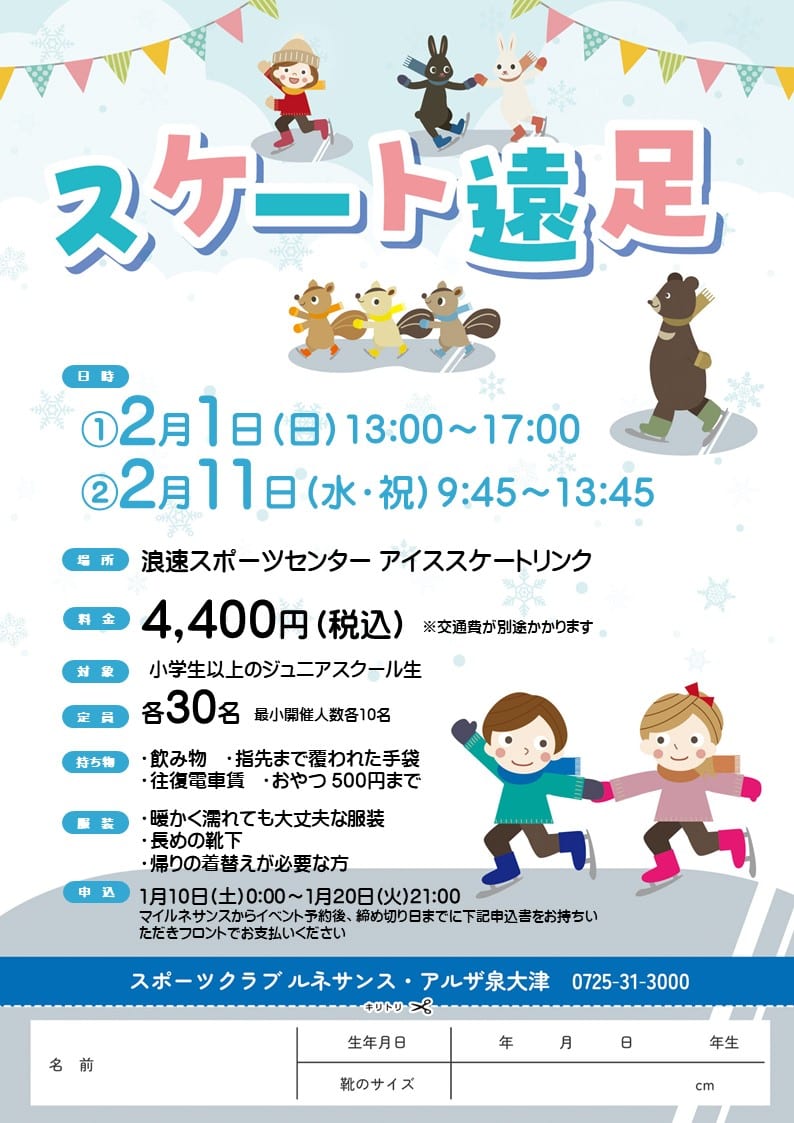 ジュニアスクールは2月にスケート遠足を実施します!!