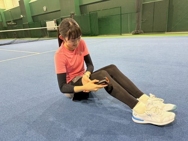 今回、テニスコーチの山本コーチにリリースガンを使っていただき、実際に体感してもらいました!!