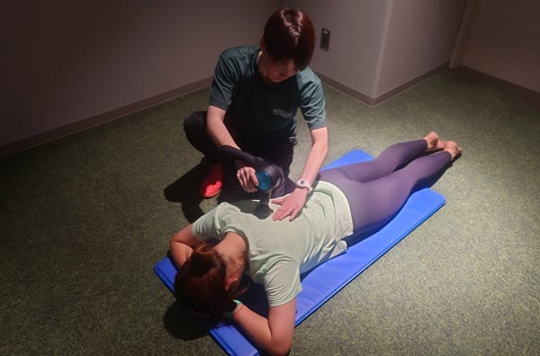 マッサージガンで背中・お尻・もも裏などをマッサージ