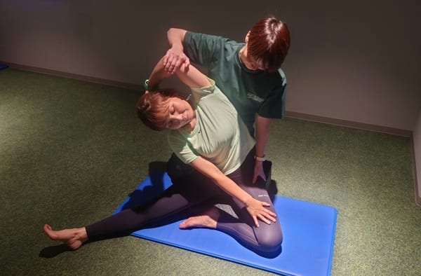 ペアストレッチで一人では伸ばしきれない筋肉をストレッチ