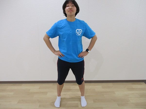 ②手を腰もしくは肩に置きます