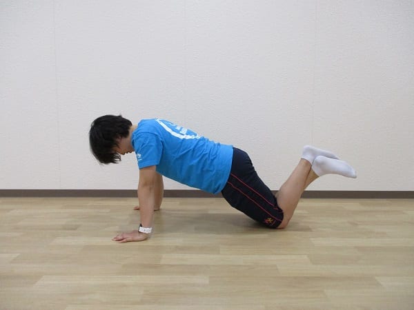 ①肩幅よりやや広く床に手を置きます