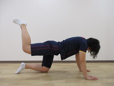 ②膝を曲げたまま、片足を天井に向かってあげます