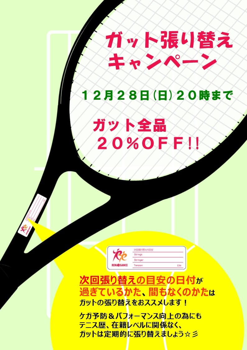 【ガット張替え 全品20%OFFキャンペーン!】