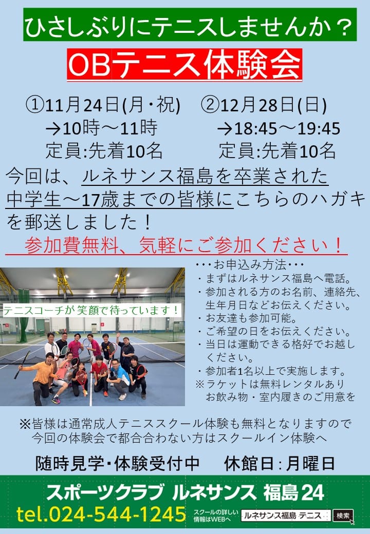 28日(日)福島クラブにテニスをしに来ませんか?!