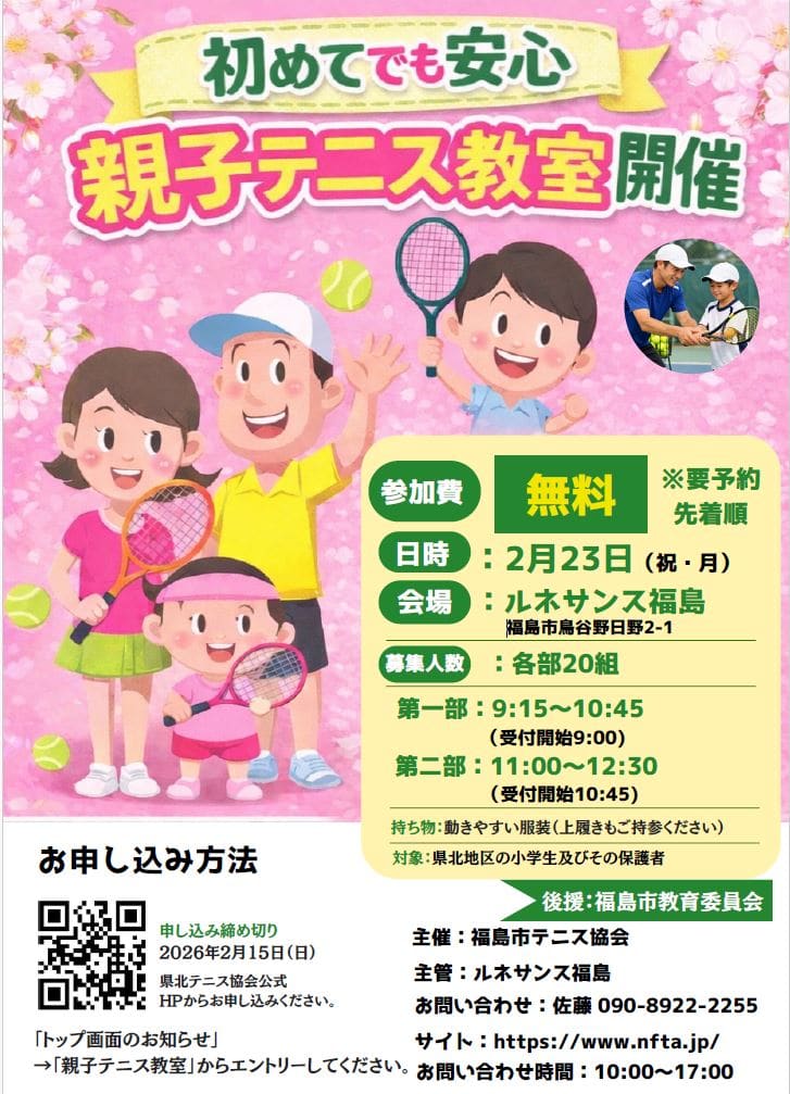 ●2月23日(祝・月)親子テニス教室