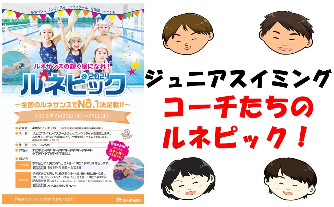皆さま、こんにちは! スイミングの芳田です! 2月といえば、、、ルネピックですね!! そこで!!! コーチたちもクロール25mを泳ぎました! ・・・・