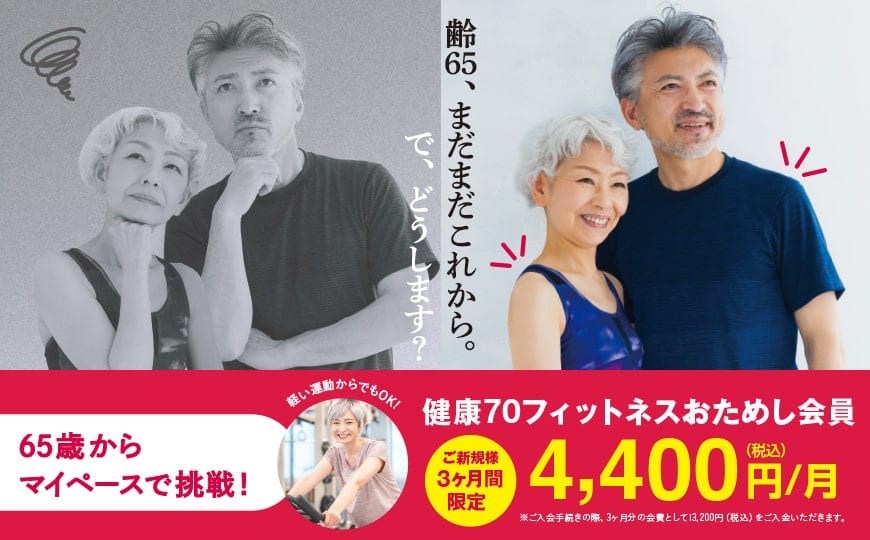 【65歳からOK!新規限定4,400円】健康70フィットネスおためし会員募集!始めよう運動習慣