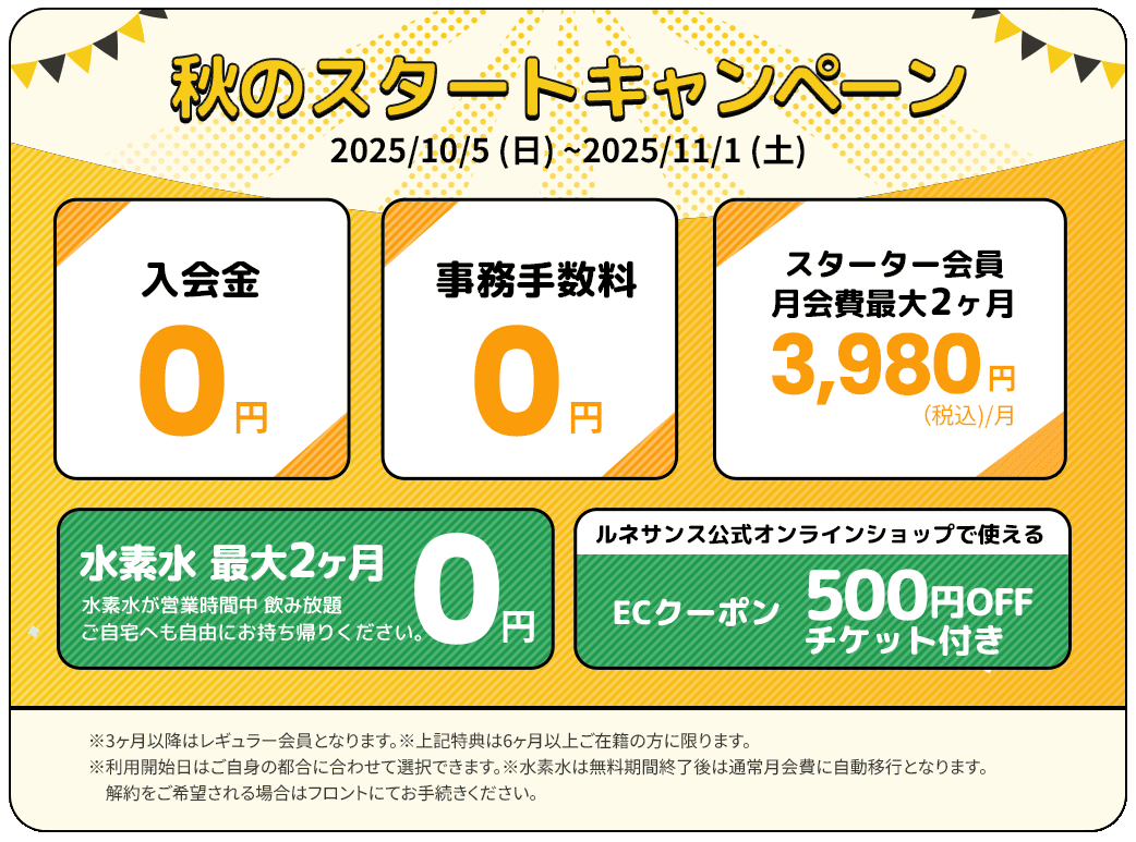 ※体験後そのままご入会される場合は、クレジットカード・メールアドレス・本人確認書類をご持参ください。