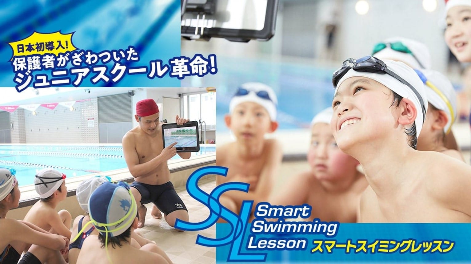 自分の泳ぐ映像をその場で確認できるレッスンで、
