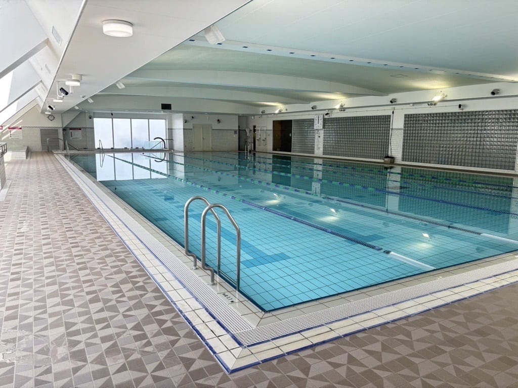 25mプールが6コースあります。ひろびろとお使いいただけると思います。