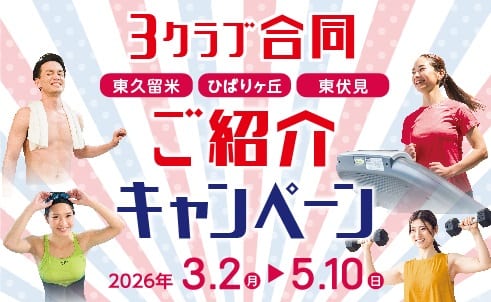 【西東京エリア3クラブ合同】紹介キャンペーン実施中!会員の皆さまのご紹介でトリプル0円+月会費1か月分1,100円引き さらにご紹介者から抽選で国産米5kgが当たるキャンペーン実施中!