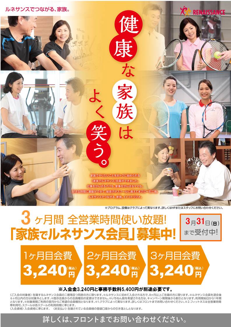 3/31迄|家族でルネサンスキャンペーン実施中