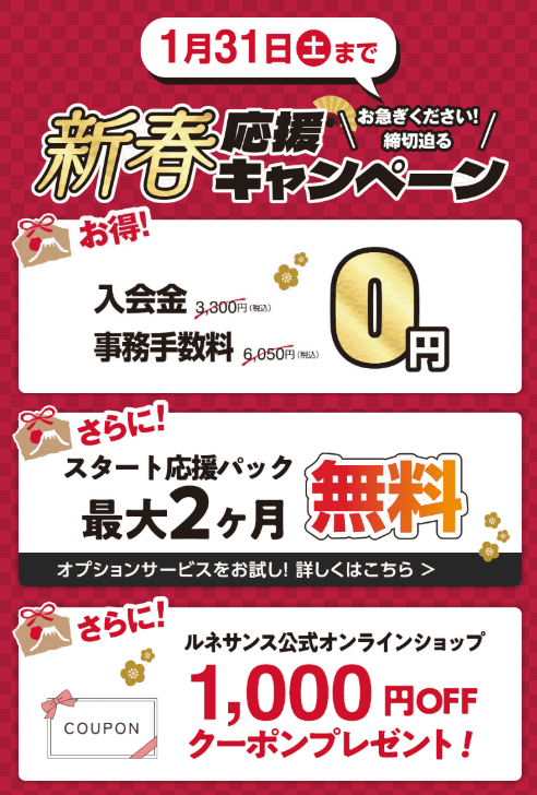 現在、1月12日(月)~1月31日(土)まで新春応援キャンペーンを実施中!