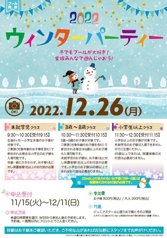 【ジュニアスイミング】ウィンターパーティーのお知らせ