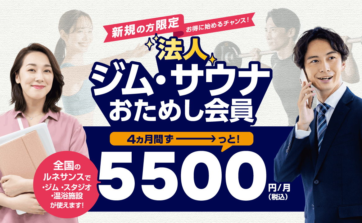 【新規限定|会員プラン】月額5,500円で全国のルネサンスが使える!「法人ジム・サウナおためし会員」をチェック!