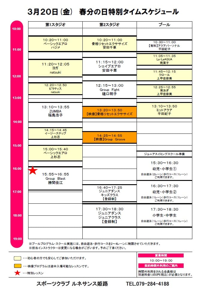 時間・プログラム・担当者変更 14:35~15:15 ベーシックエアロ 安田