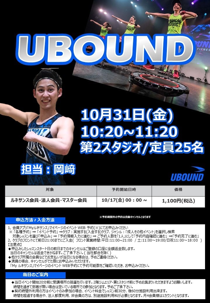 岡﨑インストラクターによるUBOUND60を行います!!