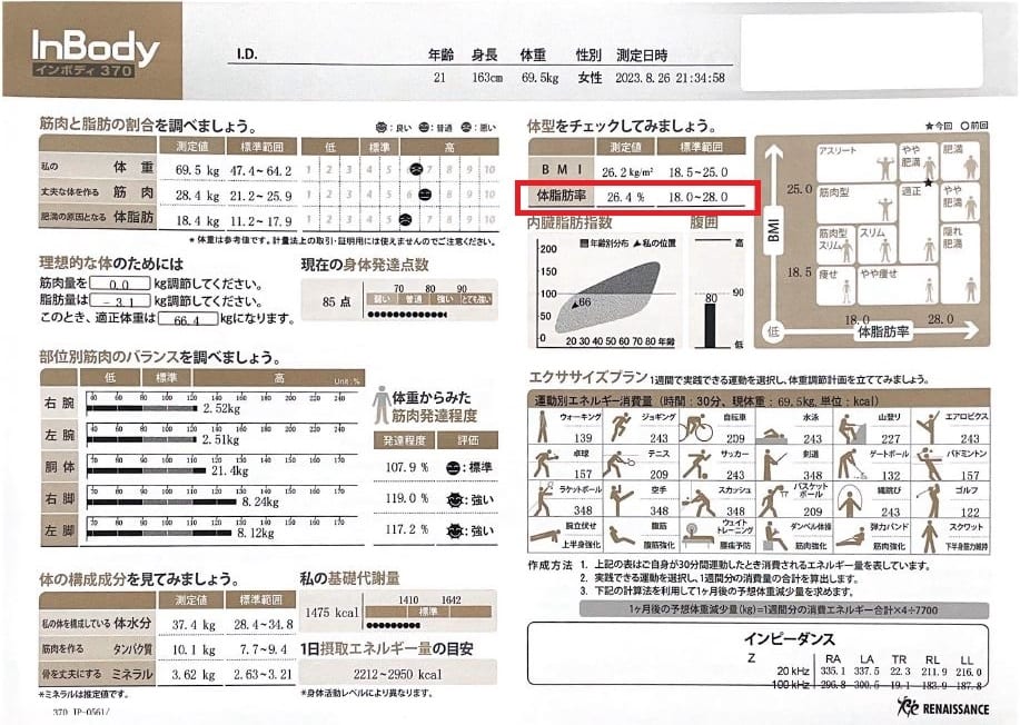 体脂肪率が約5%下がり体重は約4㎏減りました~~‼‼