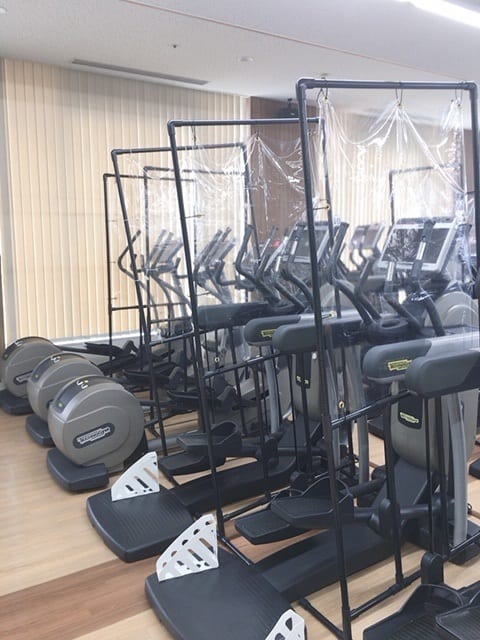 飛沫防止パーテーションをジムエリア各所に設置しております。