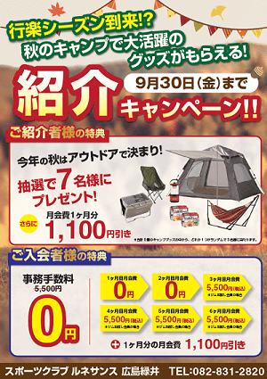 9月紹介特典 ~キャンプグッズをゲットして秋を楽しもう!~