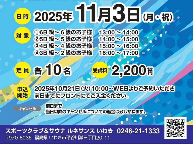 ジュニアスイミング生に向けてのご案内です。
