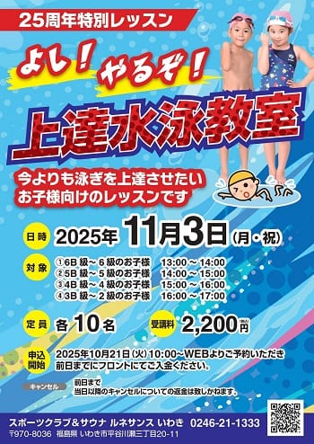 【25周年特別レッスン】今よりも泳ぎを上達させたいお子様向けのレッスンです。