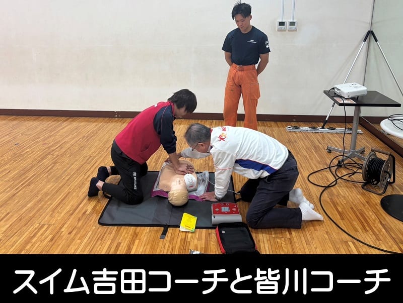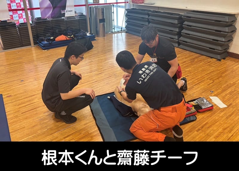 避難訓練実施後は平消防本部の方をお招きして、心肺蘇生法の実施並びにAEDの使用方法について学びました。