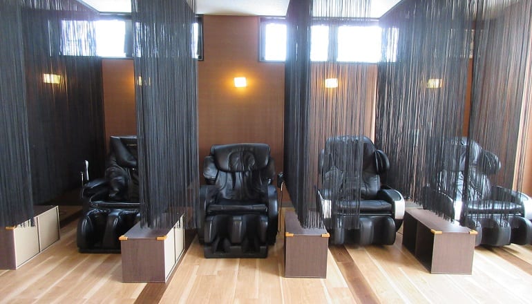また入ってすぐのラウンジには大型テレビとマッサージ機もあるので