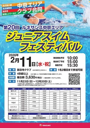 今年のジュニアスイミングフェスティバルは、2月11日(水)の祝日のに開催します!!