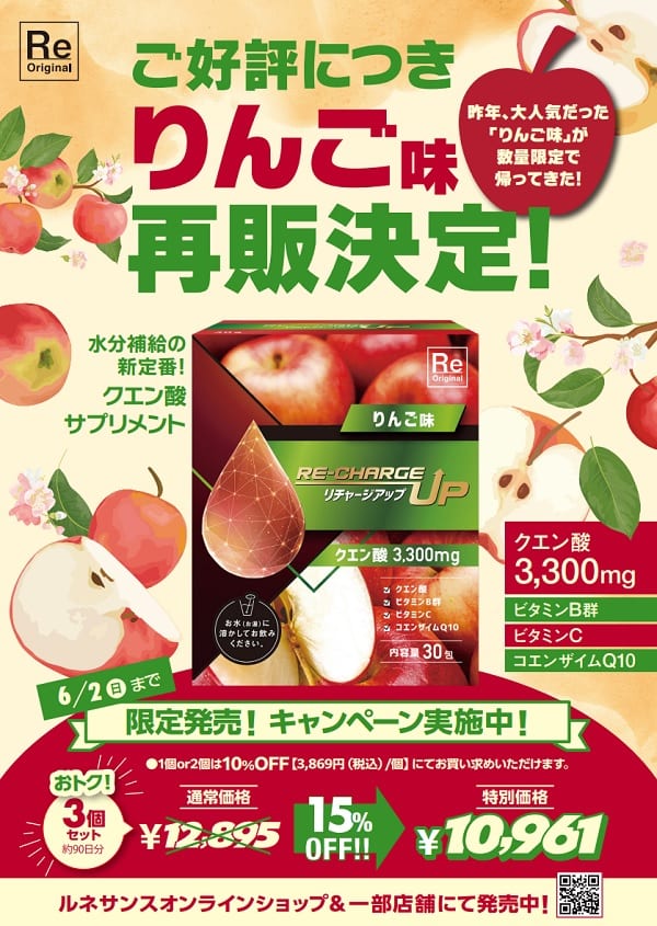 【キャンペーン】6/2迄!リチャージアップをおトクにゲットするチャンス!&りんご味再販決定!