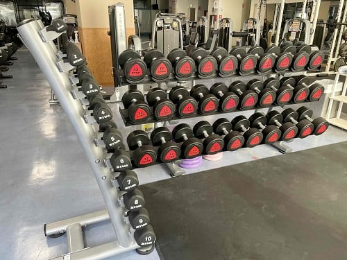 今回、変わったところはジムエリア(フリーウエイトエリアとマシンエリア)