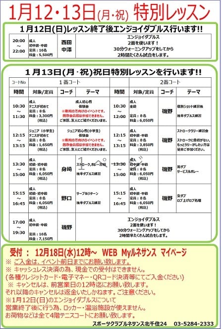 1月(^^♪ テニスイベントレッスンについて