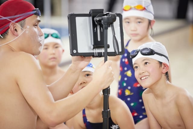 本サービスは、進級テストの合否だけではなく、お子様が実際に泳いでいる様子を動画として撮影する事で、大切なお子様の成長の記録として保護者様へお届けできるとともに、レッスン中におきましてもお子様の理解度や集中力の向上を期待できるサービスでございます。