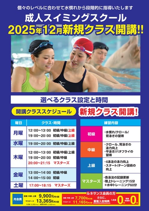【スイミング|成人スイミング体験】12月~新規クラス開講決定!大人の習い事として水泳を始めてみませんか?体験レッスン24時間webから受付中★さらに今ならお得なキャンペーン実施中です!