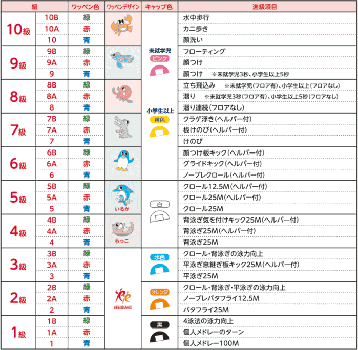 ルネサンスでは、無理なく段階的にスイミングの技術を向上させるため、