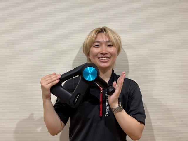 高性能な振動ガン「セラガン」で心地よい力とリズムで“叩く”ことで筋肉をゆるめ、トレーナーがほぐれた筋肉をやさしく伸ばす、ペアセッション。