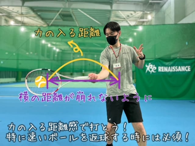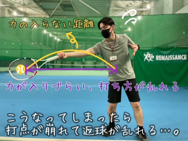 速いボールの打ち合いになるととっさに遠くにボールが来ることも、その時に打点が崩れたら上手く打てない。