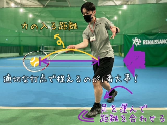 打点が崩れないように足を運び適切な距離感で打つ!
