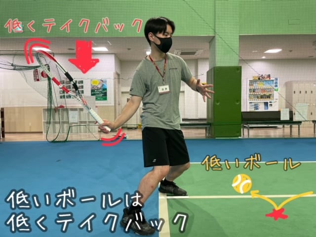 低い弾道のボールは低めのテイクバック!高い打点の打ち方と考え方は一緒、準備の高さを打点の高さに合わせる!