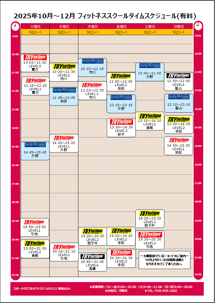 月 火 水 木 金 土 日 LEVEL1 休館日 11:15~12:15