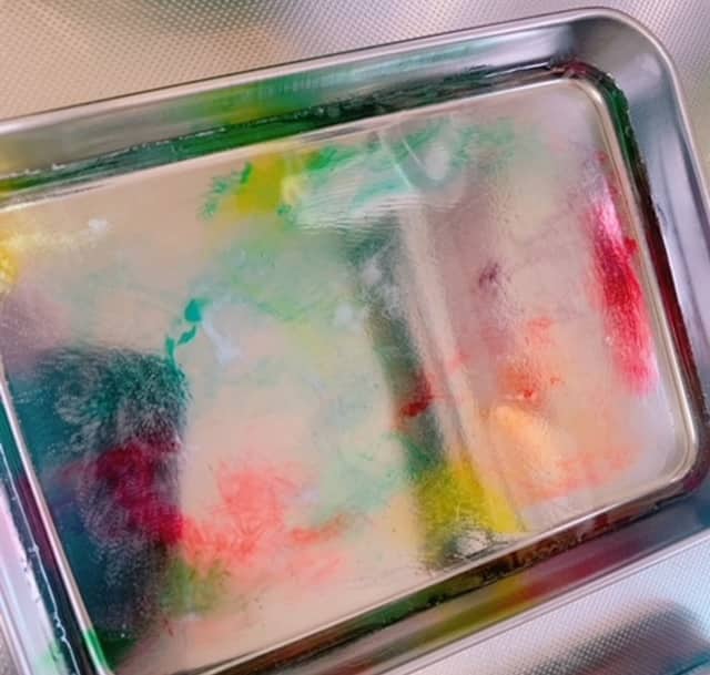 ④【お楽しみPOINT1★】食紅を爪楊枝で垂らしたり描いたり!お好きなままに!