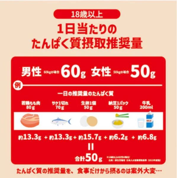 それを聞くとなんだか1日に必要なたんぱく質を食事だけで補うのは大変ですよね…( ;∀;)