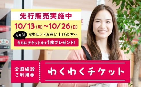 お得な先行販売 実施中! ジム・プール・スタジオ、スパやサウナまで楽しめる「わくわくチケット」好評発売中!\お得なチャンスをお見逃しなく!/ 先行販売期間・・・・・・・・~2025年10月26・・・・