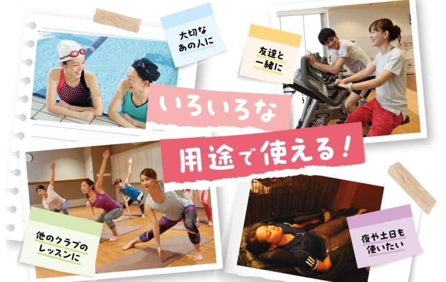 ※ご利用は中学生以上となります。※24時間営業店舗は、営業時間のみご利用いただけます。※本チケットでスクールレッスンの受講はできません。※スタジオプログラムはWEB予約制です。会員外の方は当日空きがある場合のみご参加いただけます。